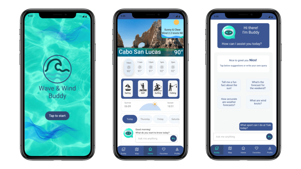 A mobile weather app that educates users using AI to understand complex weather data of their preferred watersport, resulting in captivating inexperienced users.