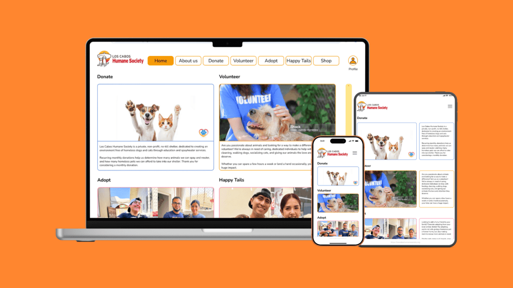 Website redesign using a mobile- first approach and implementing new features to encourage animal shelter volunteers to engage more consistently and become recurring contributors.
